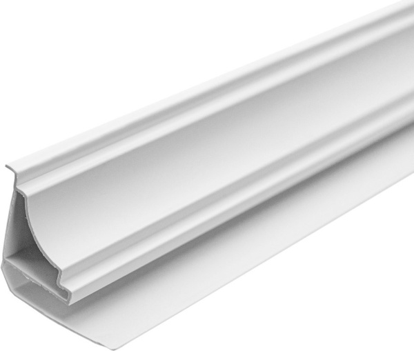 Потолочный плинтус из ПВХ представляет собой декоративный профиль с пазом под фиксацию внутренней настенной обшивки из пластика или МДФ. Изделие выполнено в классическом стиле, который легко сочетать с любым типом оформления помещения. Белый цвет сочетается со светлыми и контрастными темными оттенками панелей, подходит под любые фактуры. легкий потолочный плинтус отличается высокой прочностью. Изначальный внешний вид потолочного профиля сохраняется годами, независимо от окружающих условий.