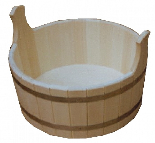 Используется для горячей и холодной воды, также в нем запариваются веники для бани и сауны, заваривается травяной чай, травяной сбор, разбавляются эфирные масла. Материал липа.