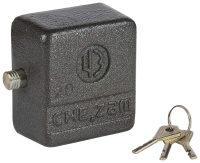 Замок из группы замков с повышенной степенью защиты. Его конструкция полностью исключает доступ к дужке, из-за этого в проеме не скапливается дождевая вода или снег, что становится особенно важным при использовании замка в осенне-зимний период эксплуатации. Материалом для корпуса служит чугун, для дужки выбрана сталь.