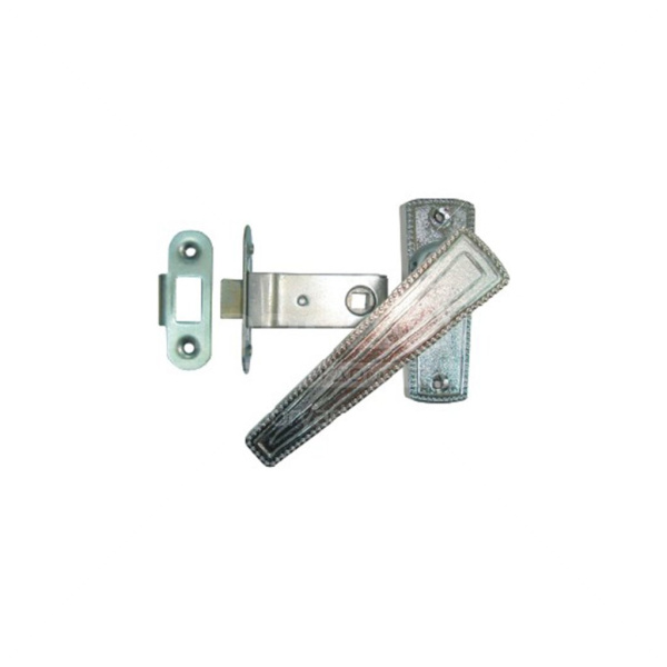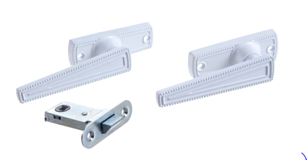 Защелка 3Щ2.01 - это приспособление, которое монтируется внутрь дверного полотна. Защелка позволяет захлопнуть дверь, но не запереть ее. Изделие поставляется в комплекте с двумя ручками белого цвета. Тип используемых ручек - на планке.