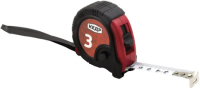 Модель рулетки с эргономичным обрезиненным корпусом для защиты от падений. Имеет ребра против скольжения. На корпусе предусмотрен металлический поясной зажим и нейлоновый ремешок для ношения на руке. Надежный механизм фиксации полотна.