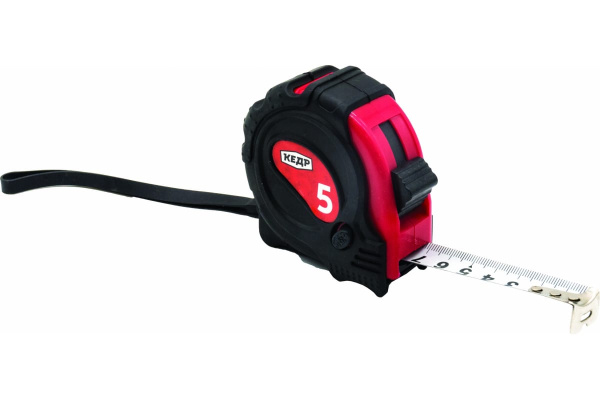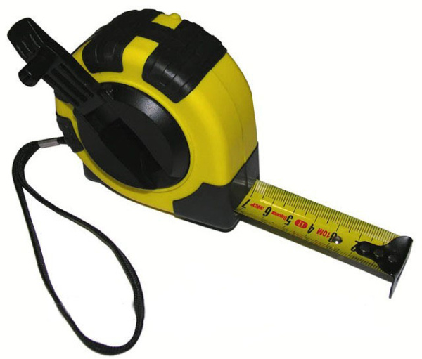 Модель рулетки с эргономичным обрезиненным корпусом для защиты от падений. Имеет ребра против скольжения. На корпусе предусмотрен металлический поясной зажим и нейлоновый ремешок для ношения на руке. Надежный механизм фиксации полотна.