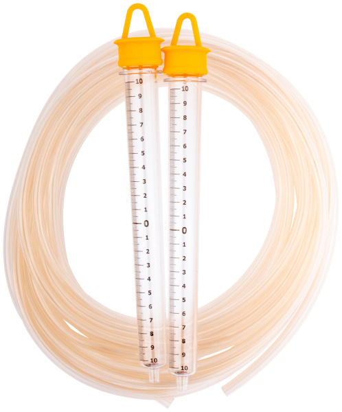 Гидроуровень - приспособление для измерения горизонтали двух удаленных друг от друга точек относительно поверхности земли. Он состоит из 2-х пластиковых или стеклянных колб с нанесенными на них делениями, соединенных между собой гибким шлангом длиной от 2-х до 25 метров. Гидроуровень действует по закону гидростатики, гласящем, что в сообщающихся сосудах уровни жидкости равны между собой.
