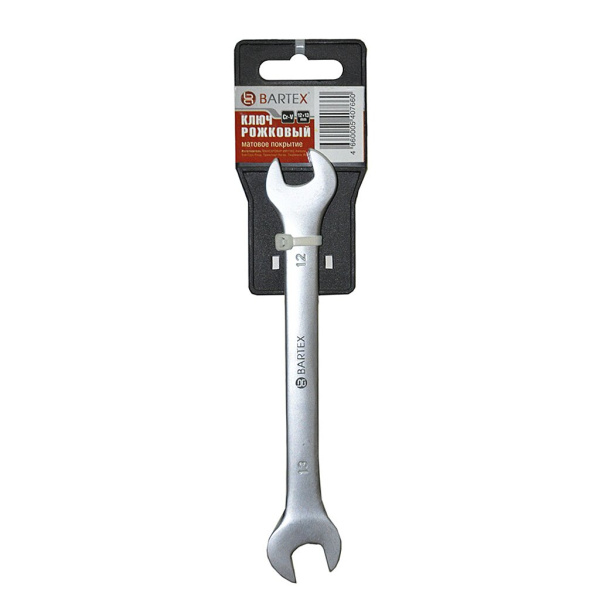 Двусторонний рожковый ключ Bartex имеет две головки разного размера. Ключ выполнен из высококачественной хромованадиевой стали, что гарантирует надежность и длительный срок службы инструмента.