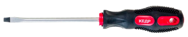 Отвертка шлицевая КЕДР оснащена стержнем небольшой длины для выполнения базовых операций. Она удобна в использовании за счет двухкомпонентной рукоятки, которая не скользит в ладонях.