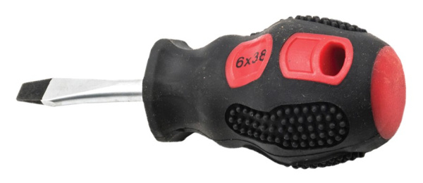 Отвертка шлицевая КЕДР оснащена стержнем небольшой длины для выполнения базовых операций. Она удобна в использовании за счет двухкомпонентной рукоятки, которая не скользит в ладонях.