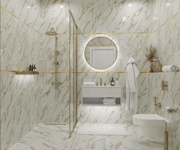 Коллекция Тривия Primavera выполнена в классическом стиле. Представлена актуальной текстурой белого мрамора с золотыми прожилками, и дополнена плиткой с растительным орнаментом. Керамическая плитка в удобном размере 30х60 имеет ректифицированные края, что дает возможность уложить с минимально тонким швом. В основе коллекции Тривия Primavera лежит современная фактура плитки, которая подойдет для любого помещения. Отлично впишется в интерьере ванной комнаты небольшого размера.