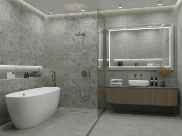 Коллекция Филира Primavera выполнена в современном стиле лофт. Представлена актуальной текстурой серого бетона, и дополнена плиткой с растительным орнаментом. Керамическая плитка в удобном размере 30х60 имеет ректифицированные края, что дает возможность уложить с минимально тонким швом. В основе коллекции Филира Primavera лежит современная фактура плитки, которая подойдет для любого помещения. Отлично впишется в интерьере ванной комнаты небольшого размера.