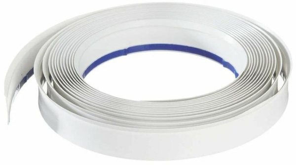 Нащельник ПВХ - это плоская самоклеющаяся планка с уплотнением и эластичным краем из белого ПВХ, с клейкой полосой с одной стороны.
