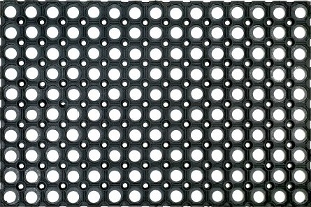 Грязезащитный коврик со сквозными отверстиями по всей площади не боится воды, ультрафиолета, перепадов температуры и химических реагентов. Он очищает обувь от крупных фракций грязи и снега. Кроме того, резина - это противоскользящее покрытие, поэтому наличие подобного ковра на крыльце сделает его намного более безопасным в зимнее время.