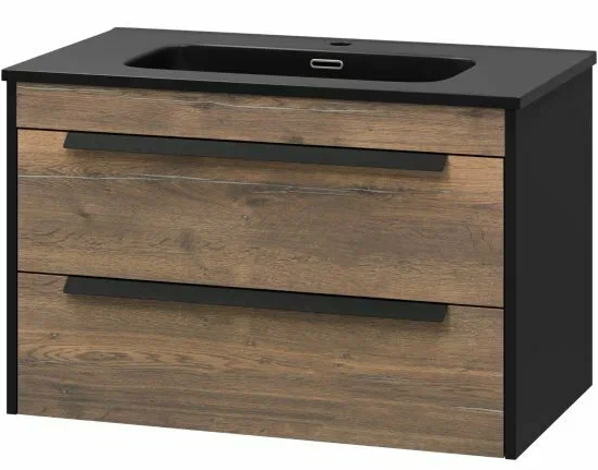 Тумба для ванной Brevita Monsour-80 подвесная 2 ящ. с умывальником Ceramalux 80 черный