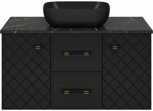 Тумба для ванной Brevita Shanel 2 ящ подвесная черный с накладным умывальником Nuage 50