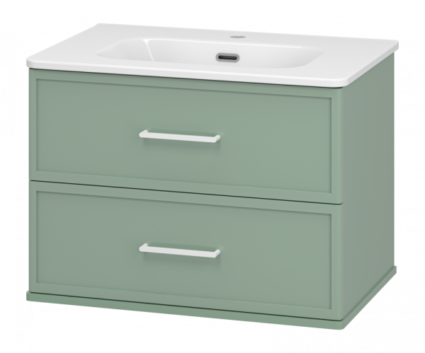 Тумба для ванной Brevita Verde-70 подвесная 2 ящ. зеленый с умывальником Onda 70