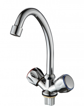 Смеситель для кухни, присутствует два рычага, каждый контролирует температуру и напор воды. Высококачественный аэратор обеспечит равномерный поток воды, в силу того, что сеточка рассеивает напор, вода становится мягче.