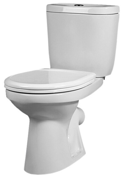 Изготовлен из сантехнической керамики. Косой выпуск позволяет подключать унитаз к канализационному входу, расположенному под углом к поверхности пола. Нижний подвод воды к сливному бачку обеспечивает низкий уровень шума при наполнении бачка.