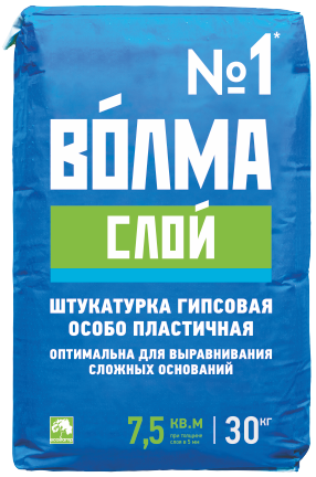 ВОЛМА-Слой - сухая штукатурная смесь на основе натурального гипса, легкого заполнителя, минеральных наполнителей и модифицирующих добавок, обеспечивающих высокую адгезию, водоудерживающую способность и оптимальное время работы.