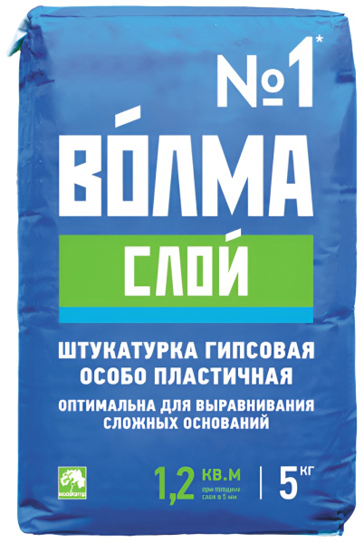 ВОЛМА-Слой - сухая штукатурная смесь на основе натурального гипса, легкого заполнителя, минеральных наполнителей и модифицирующих добавок, обеспечивающих высокую адгезию, водоудерживающую способность и оптимальное время работы.