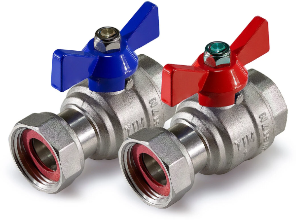 Кран шар TIM 1" с накидной гайкой баб для коллектора (пара) 34768
