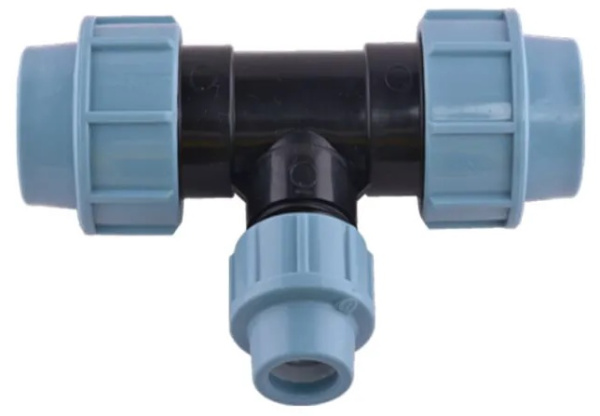 Тройник компрессионный переходной является деталью трубопровода для устройства разветвления полиэтиленовых ПНД труб разного диаметра.